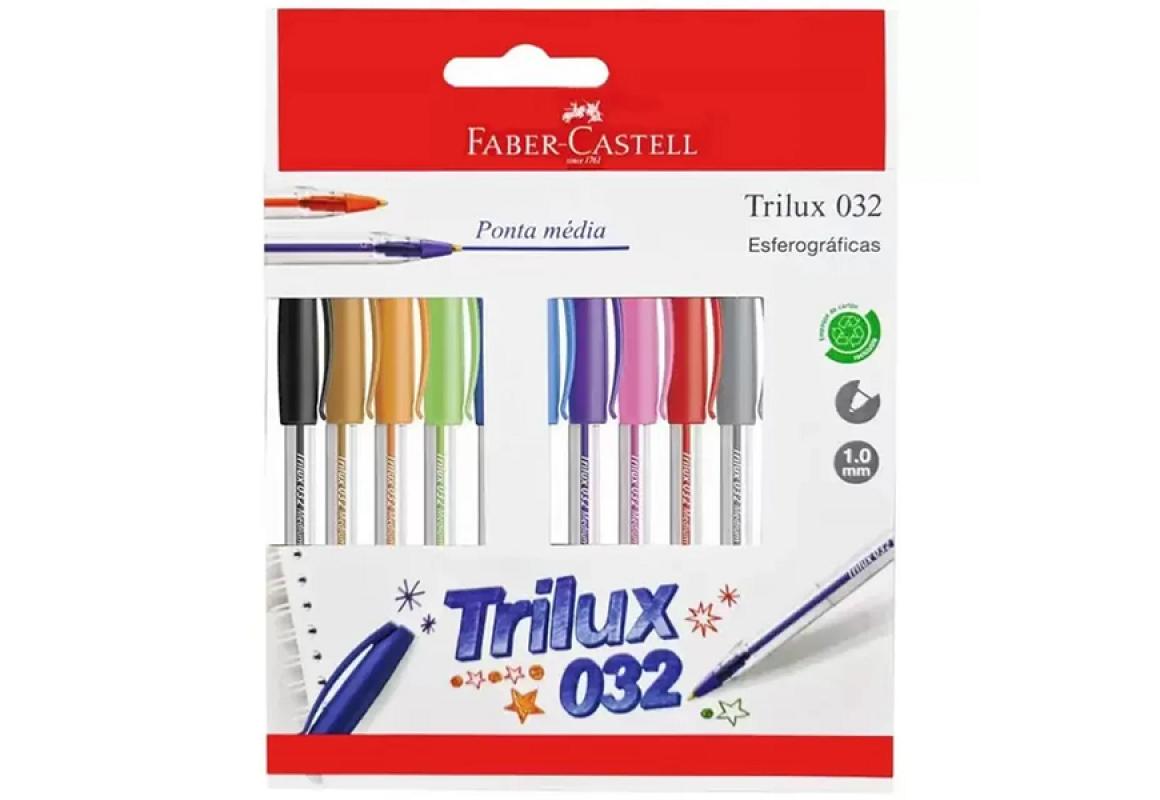 CANETA ESFEROGRAFICA TRILUX FABER MEDIA PCT 10 CORES