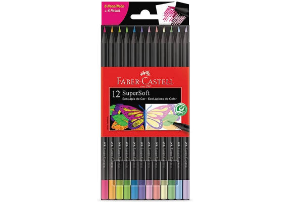 LAPIS DE COR ECOLAPIS SUPERSOFT FABER CASTELL 6 NEON + 6 PASTEL