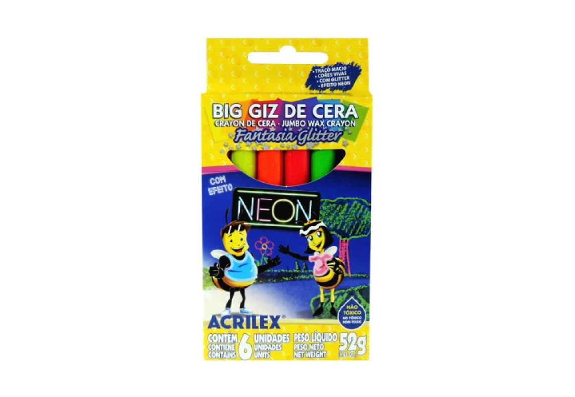 GIZ DE CERA BIG NEON GLITTER ACRILEX C/6