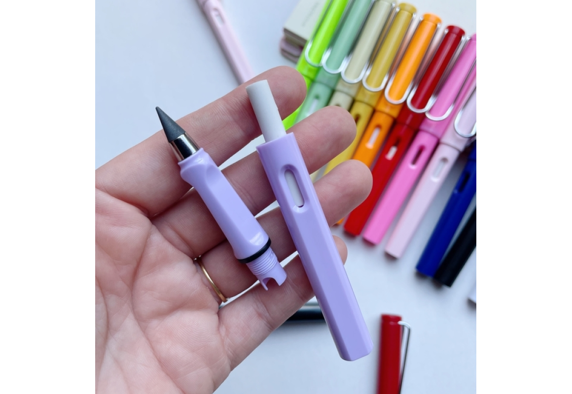 Os lápis infinitos são incríveis porque podem substituir até 100 lápis tradicionais usando pontas comprimidas. Essas pontas não precisam ser apontadas e duram o suficiente para economizar muitos lápis. Além disso, esses lápis possuem borracha em seu corpo.