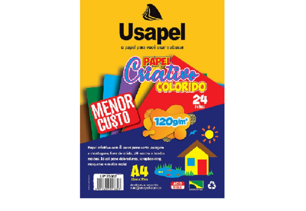 2. BLOCO USAPEL PAPEL CRIATIVO 8CORES 120G/M2 210X297MM (A4) 24FLS