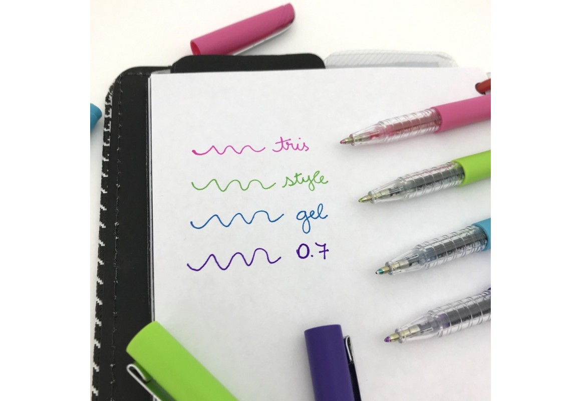 Tinta gel de secagem ra´pida; Cores vibrantes; Ponta fina: 0.7mm; Acabamento fosco; Escrita suave;