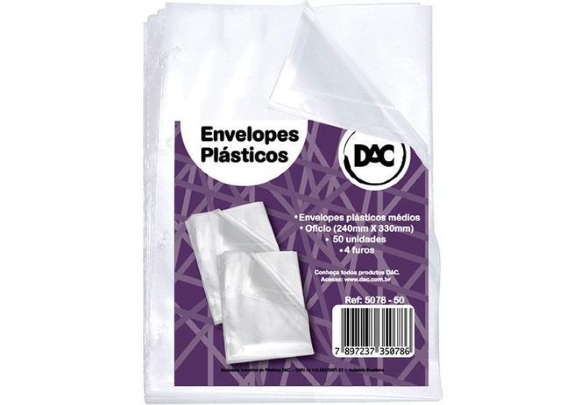 ENVELOPE PLASTICO DAC 4 FUROS OFICIO MEDIO PCT 50 UNI