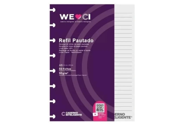 REFIL PAUTADO - A5 90G (CADERNO INTELIGENTE )