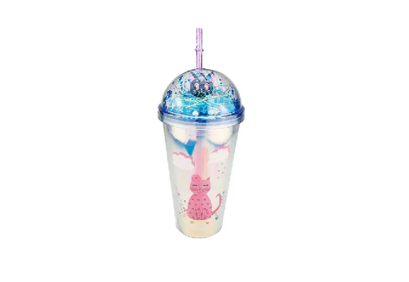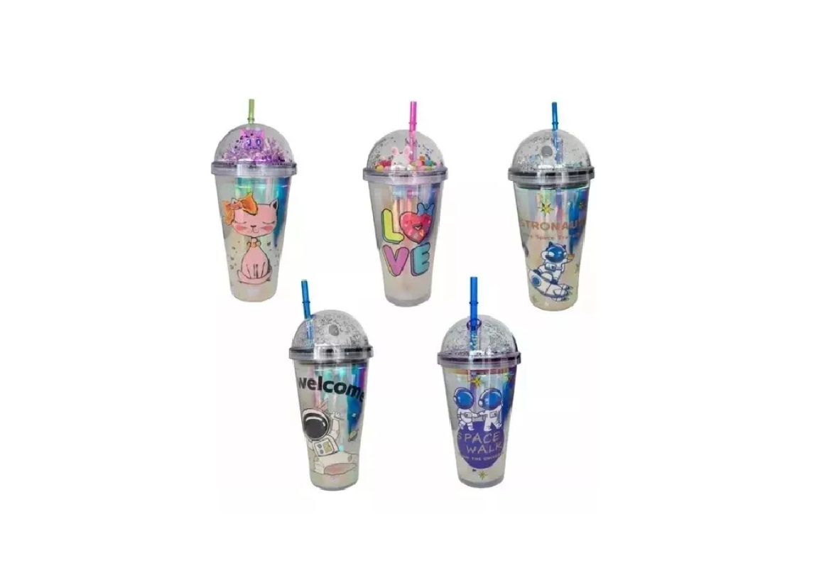 COPO DE PLASTICO 450ML LED CANUDO SORTIDOS