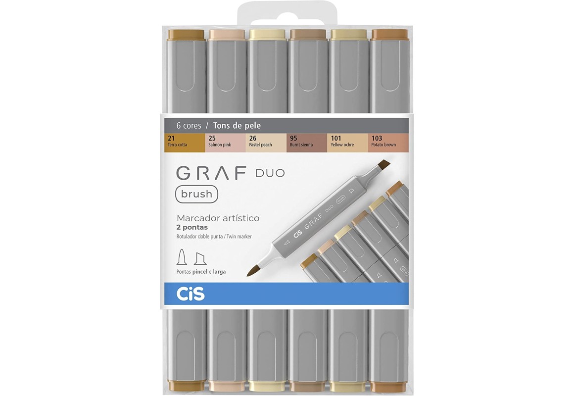 MARCADOR CIS GRAF DUO BRUSH EST COM 6 CORES TONS DE PELE