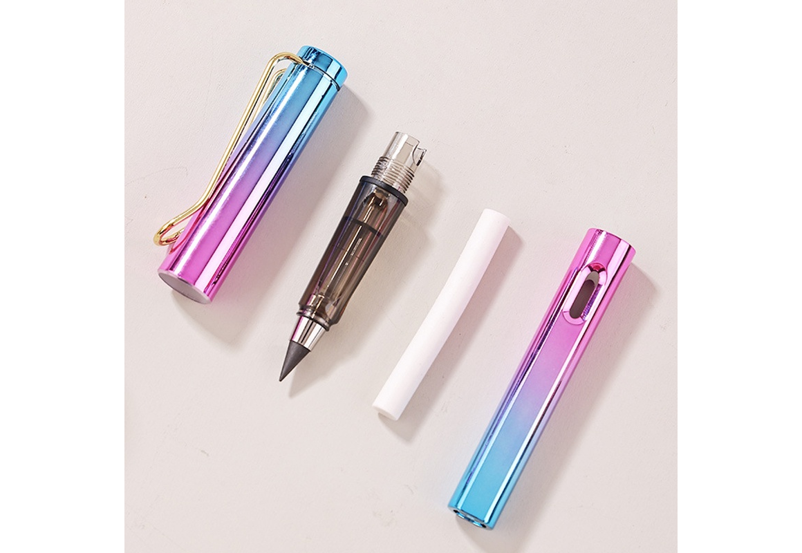 Os lápis infinitos são incríveis porque podem substituir até 100 lápis tradicionais usando pontas comprimidas. Essas pontas não precisam ser apontadas e duram o suficiente para economizar muitos lápis. Além disso, esses lápis possuem borracha em seu corpo.