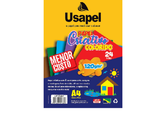 2. BLOCO USAPEL PAPEL CRIATIVO 8CORES 120G/M2 210X297MM (A4) 24FLS