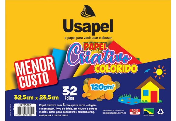 2. BLOCO USAPEL PAPEL CRIATIVO 8CORES 120G/M2 297X420MM (A3) 32FLS