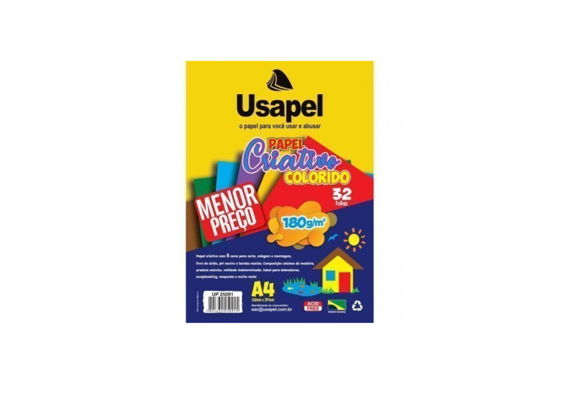 2. BLOCO CRIATIVO USAPEL 8CORES 180G/M2 210X297MM(A4) 32FLS