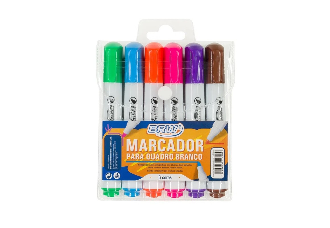 MARCADOR QUADRO BRANCO BRW - BLISTER C/ 6 CORES