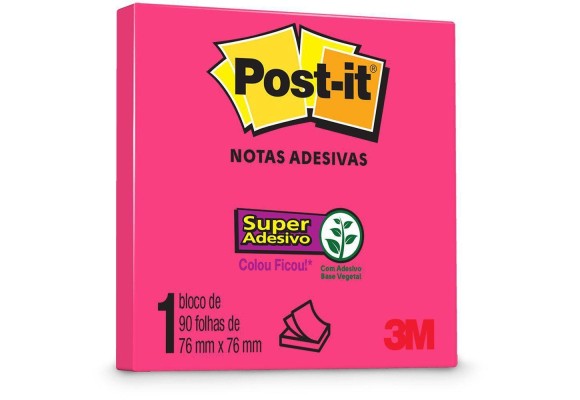 POST-IT 3M PINK NEON 76X76MM 90F NOTAS ADESIVAS