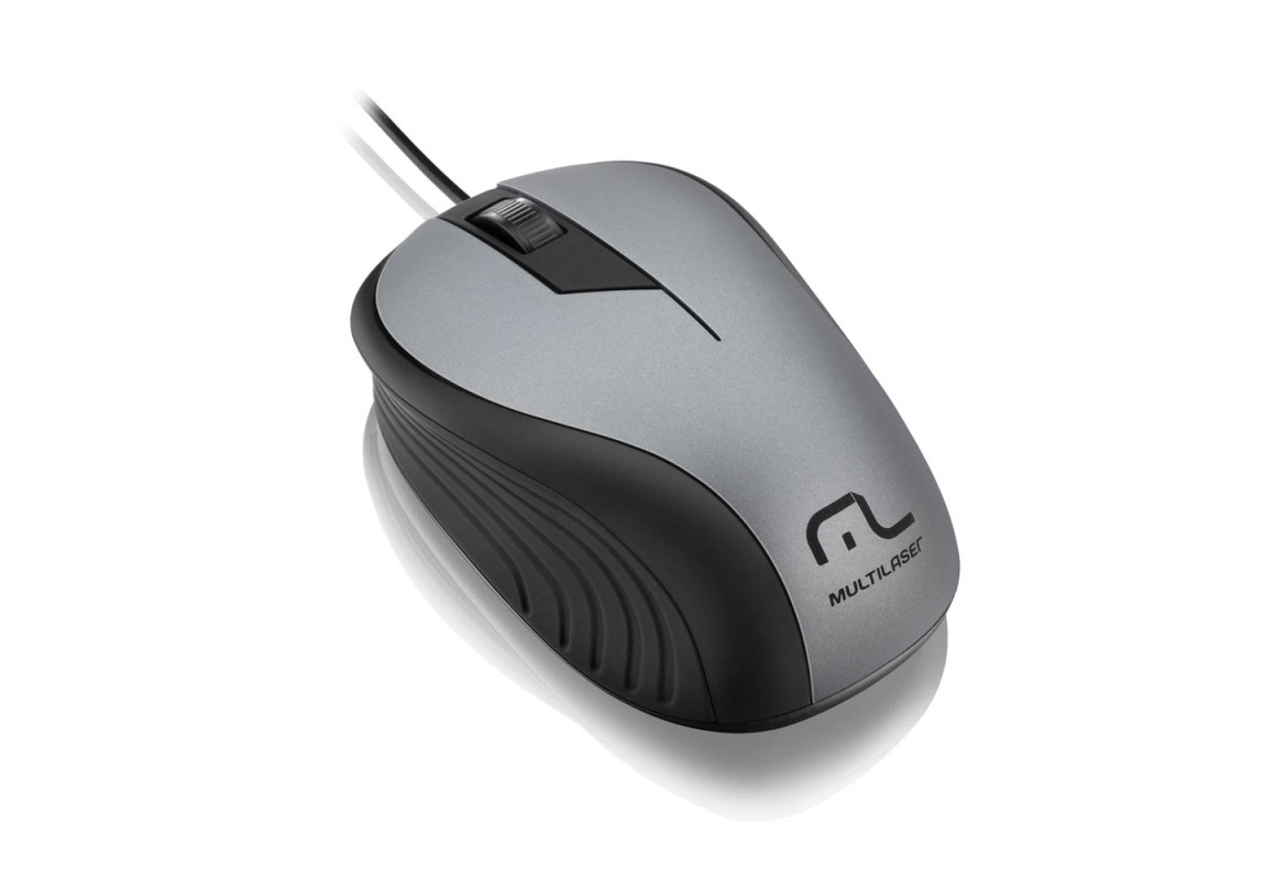 MOUSE MULTILASER EMBORRACHADO CINZA E PRETO COM FIO USB